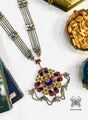 Add richness to your look with this elegant piece of jewellery, handcrafted with glasswork. Gold mirrors carved in silver finished frame dance to your tunes as they reflect the surroundings on your neck. Red and green mirrors adding more sparks. This Ekam Necklace is lightweight and can be worn with traditional as well as modern outfits.